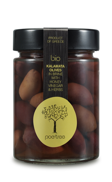 Poe-tree organic Kalamata olives come from small producers in the Messinia area in Southern Peloponnese. They are almond-shaped and their color ranges from purple to black depending on their exposure to the sun. They have a firm and meaty flesh and a fruity flavor which tastes great when eaten raw with a salad or some fresh bread, or cooked with vegetables or meat.